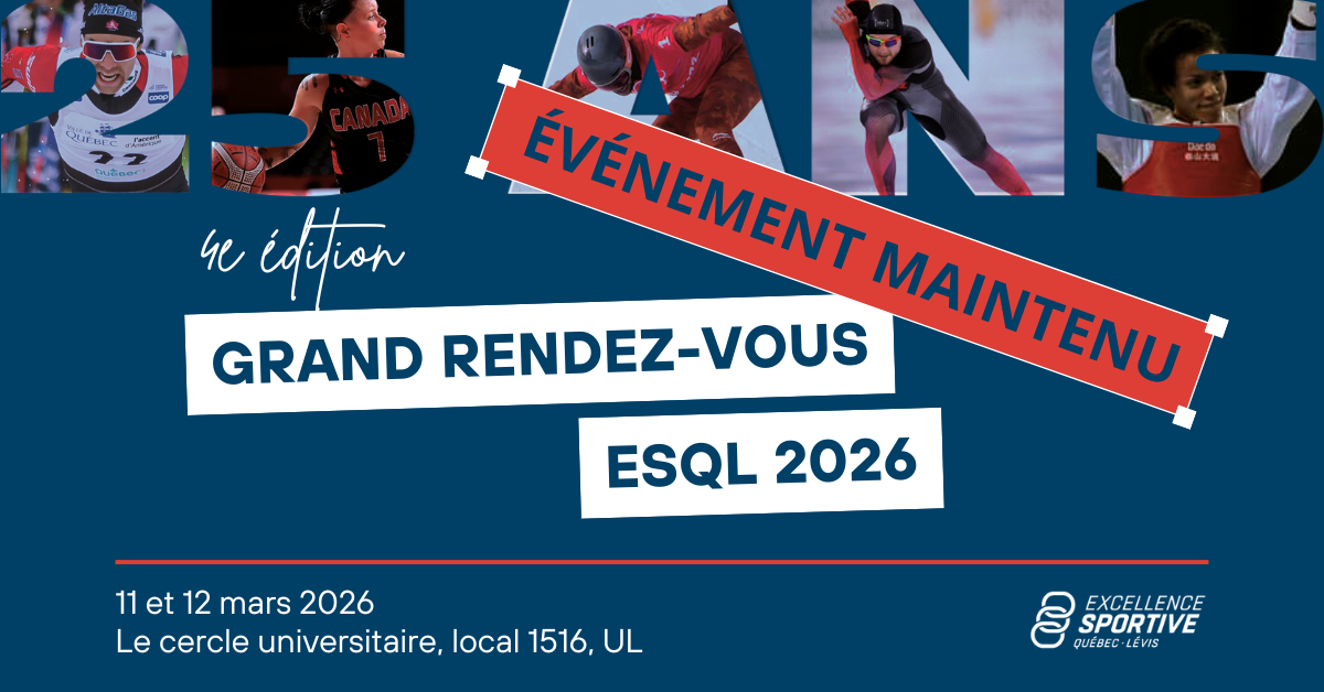 Nous sommes heureux de vous annoncer que la 4e édition du Grand Rendez-vous ESQL se tiendra sur deux journées, afin de souligner les 25 ans d’Excellence sportive Québec-Lévis.